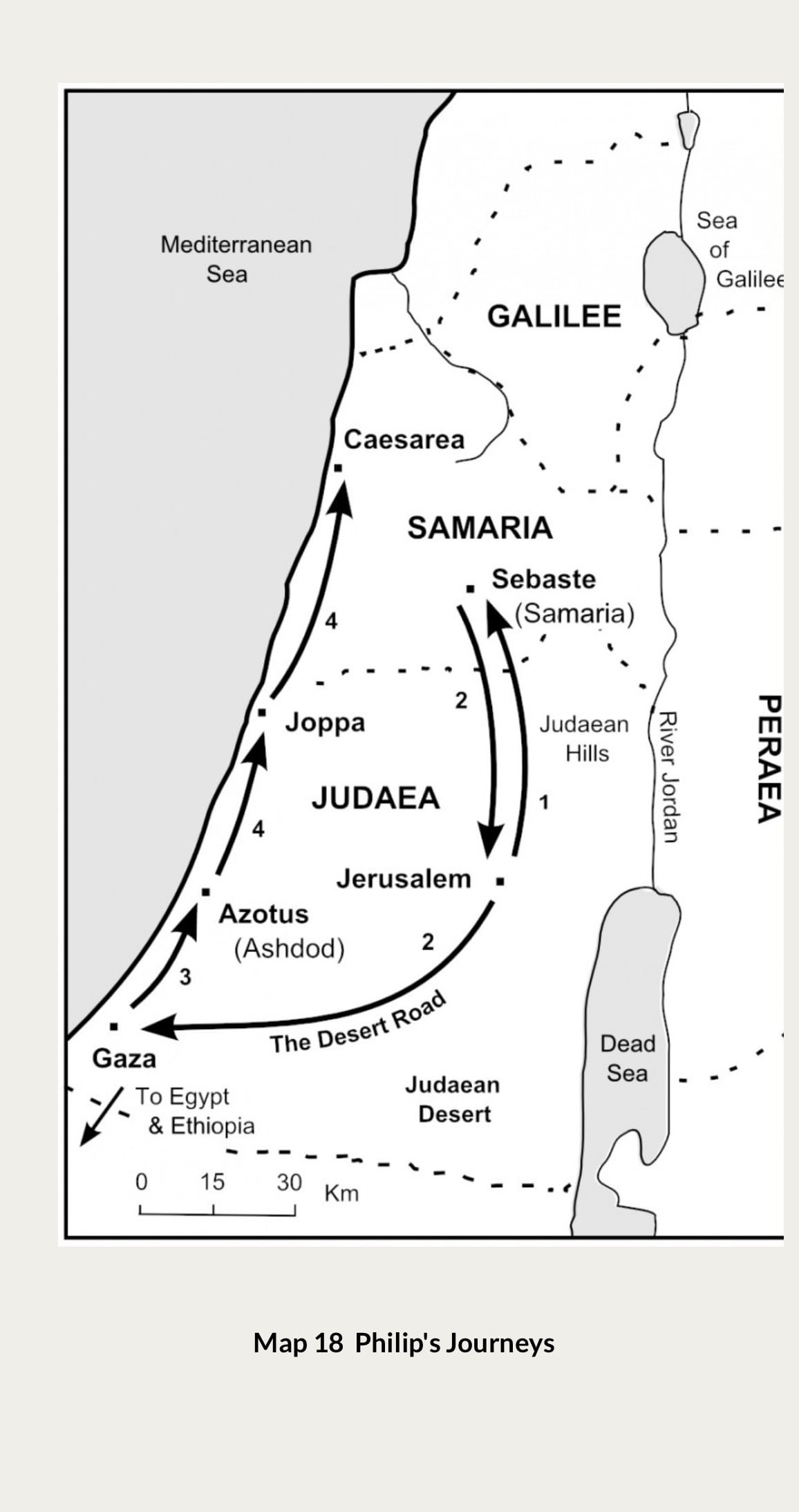 But Philip got to the point where, like Elijah, God could just catch him up and place him wherever He wanted him, and Philip instinctively knew what to do. He just started preaching to whoever would listen in all the cities. Look at this map which I found on thebiblejourney.org: